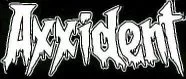 Black and white illustration featuring a demon with large wings and horns, a pregnant woman, and a small demon child, with the word "Axxident" in stylized gothic font at the top.